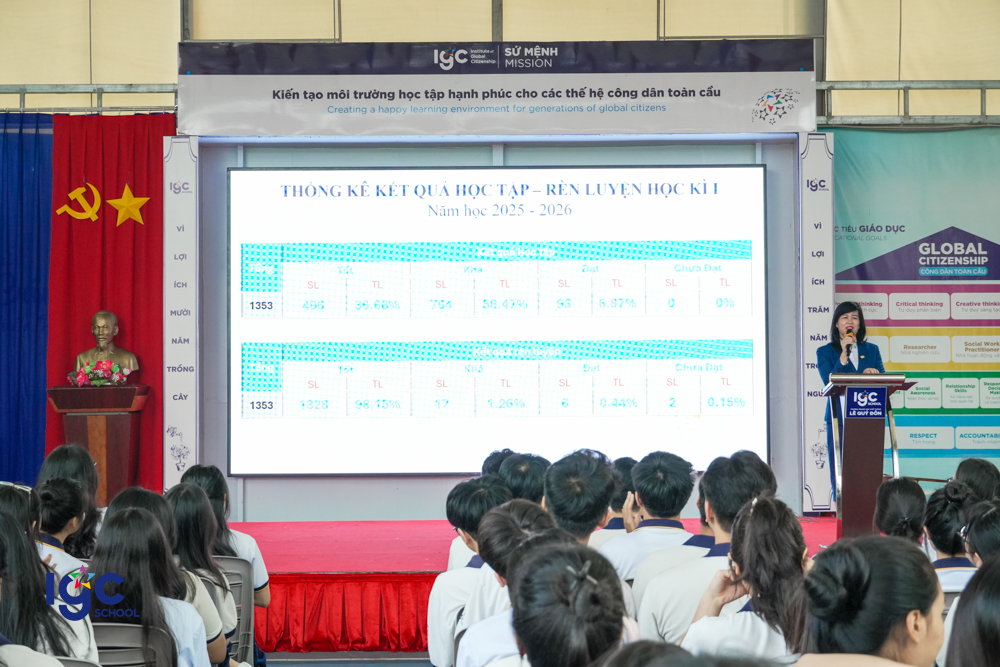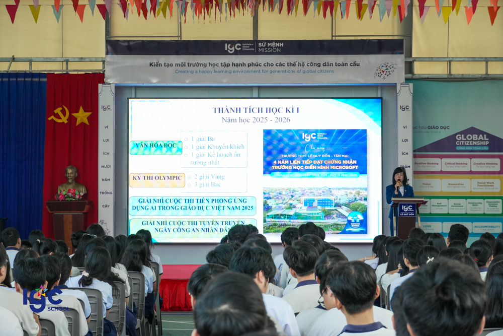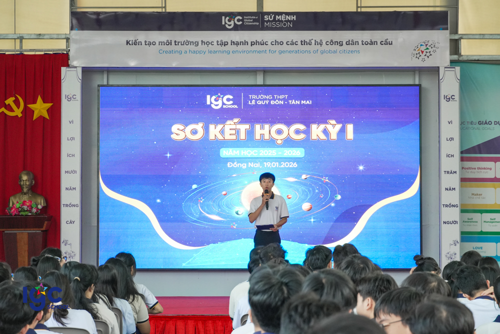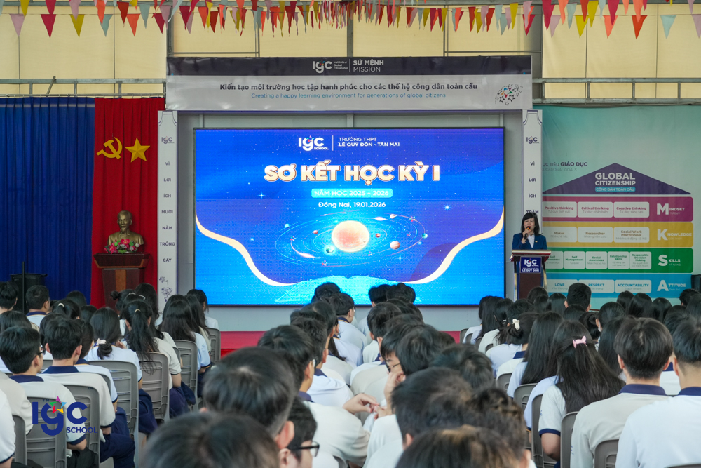Ngày 19/01/2026, Trường THPT Lê Quý Đôn – Tân Mai đã long trọng tổ chức Lễ Sơ kết học kỳ I, nhằm nhìn lại chặng đường học tập và rèn luyện của thầy và trò trong nửa đầu năm học. Tại buổi lễ, Nhà trường đã tuyên dương các học sinh và tập thể lớp đạt thành tích xuất sắc trong học tập, tích cực tham gia các hoạt động rèn luyện kỹ năng, phát triển bản thân và xây dựng môi trường học đường tích cực. Lễ sơ kết không chỉ là dịp ghi nhận những nỗ lực đã qua, mà còn là động lực để tập thể sư phạm và học sinh Trường THPT Lê Quý Đôn – Tân Mai tiếp tục phấn đấu, bứt phá và gặt hái nhiều thành công hơn trong học kỳ II.
